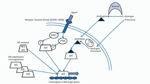 Other mechanisms resulting in activation of AR include amplification of the AR gene, upregulation of AR expression, modulation of AR cofactors, and activation of kinase pathways promoting AR function. Figure 3.1 summarizes the potential mechanisms of AR activation in castration-resistant disease.